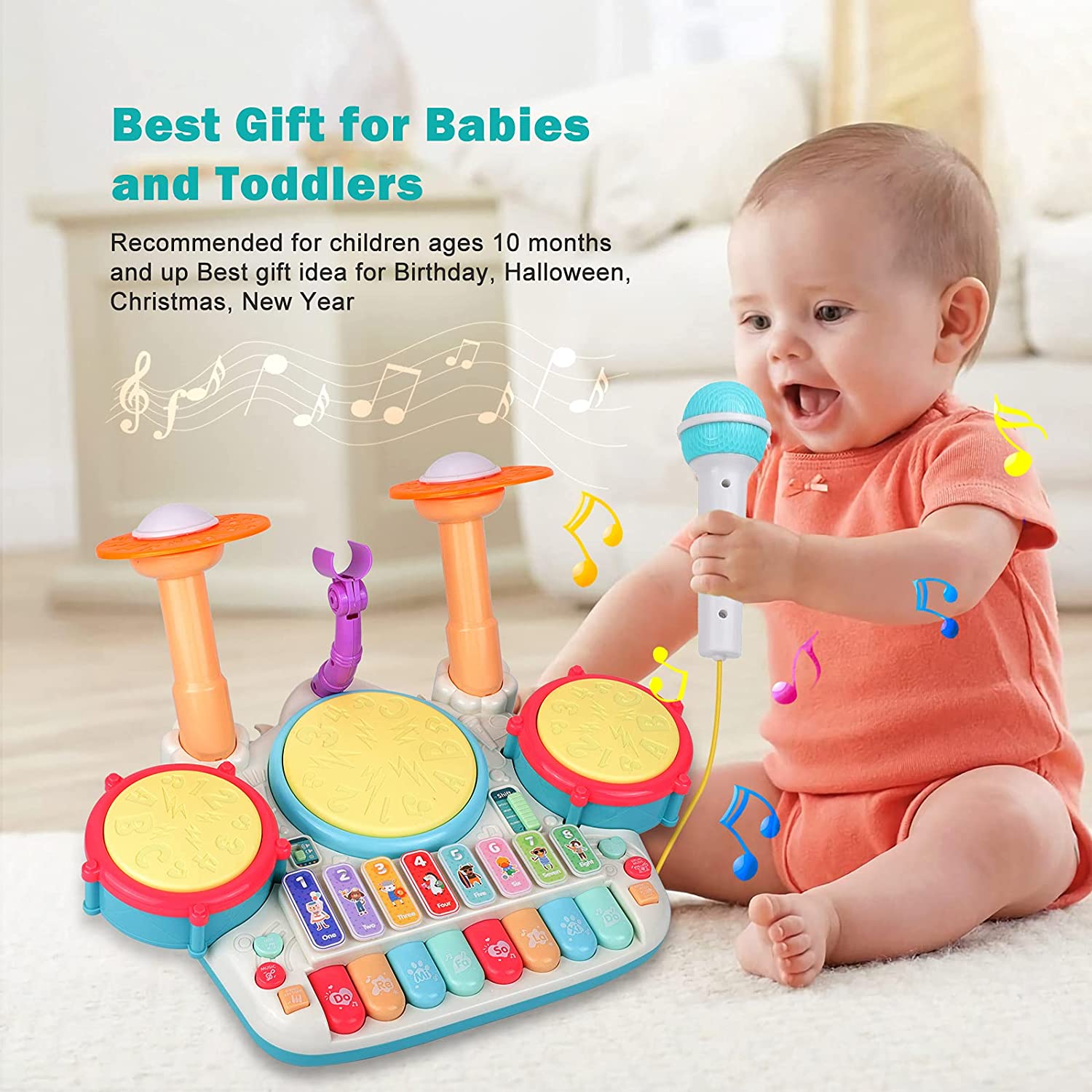 - Early Music Education Toy for Kids- Our Toddler Drum & Piano Set is a perfect learning music toy for little musicians, which increases your kid’s interest in music, enhances your baby’s eye-hand coordination and develops fine motor skills and auditory sensory by hitting drum and playing the piano keyboard