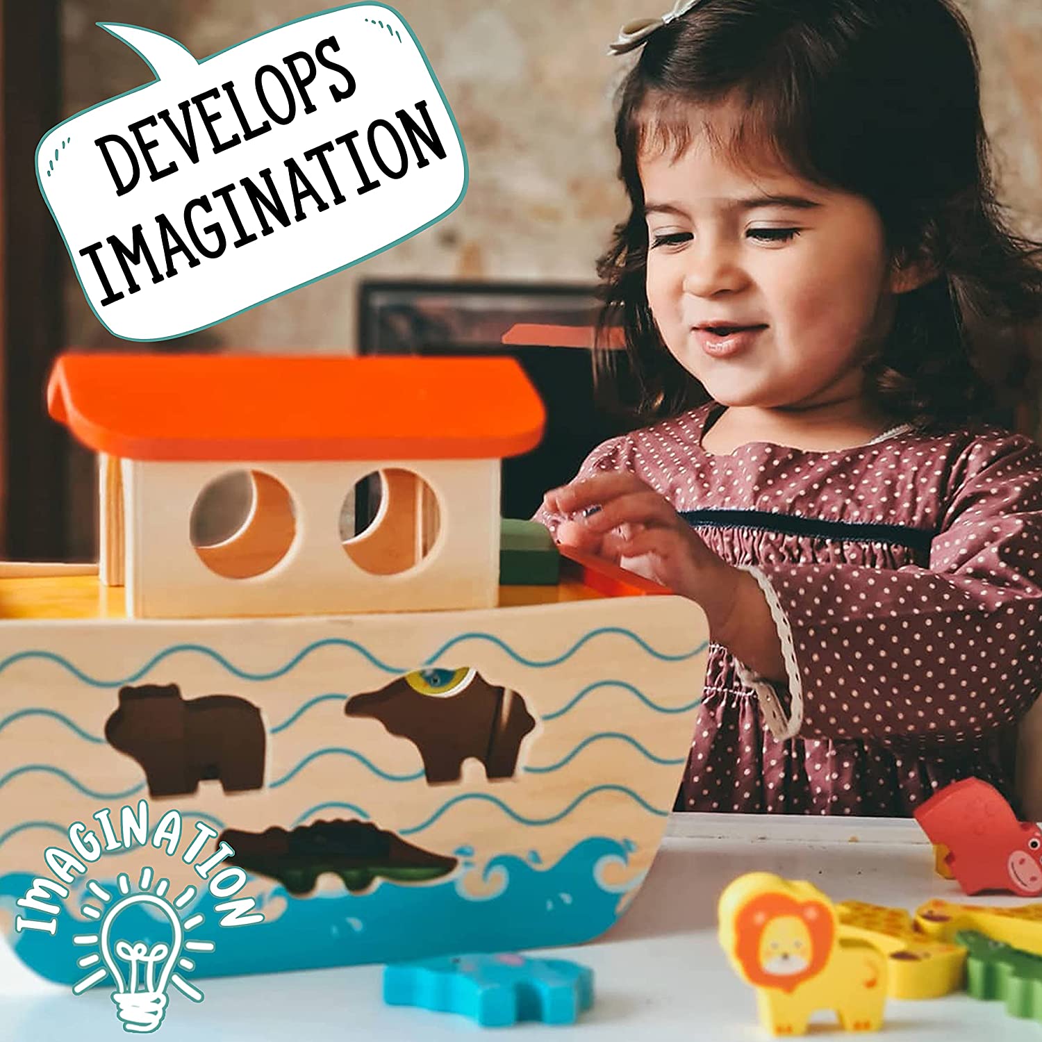 Wooden Noahs Ark Toy Playset | Wooden Toys for 1 2 3 year Olds | Shape Sorter | Baby Toddler Toy